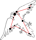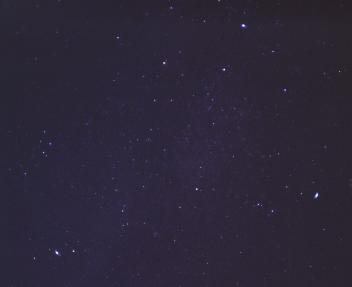 Cuando hayas calculado con el programa anterior las coordenadas horizontales (o sea, el azimut y la altura de ese punto del cielo) del centro de la constelación y mires hacia ese lugar ( como siempre tumbado en el suelo con los pies hacia el S y la cabeza hacia el N), esto es lo que verás: |